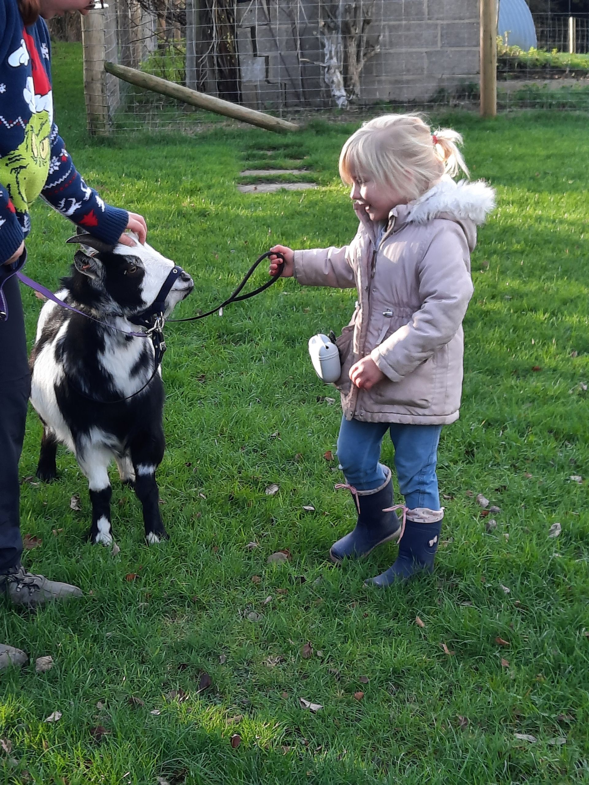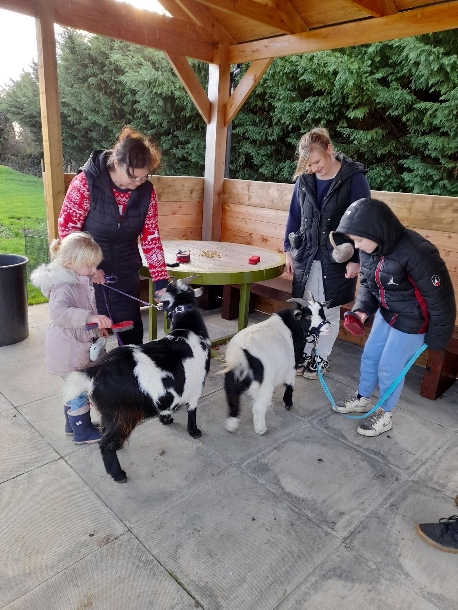 We have had lots of interest for our Goat Walking package, with local businesses, groups and families enjoying the experience. Please see below photos taken from a special Christmas Eve goat walking session!